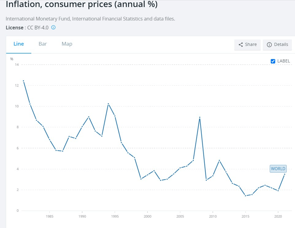 According to the World Bank, global inflation rates for consumer prices have fluctuated between a low of 1.5% and a high of 10.2% over the past 40 years. Particular economic shocks have occurred in 1982, 1991, 1994, and 2008, with 2022/23 likely to follow a similar pattern.