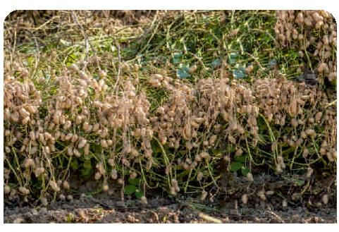 Gearthing up, a practice of covering the base and lower nodes of the plant with soil, is commonly practiced in groundnut cultivation. Earthing up is to be done within 40-45 days after sowing, as it helps for the penetration of pegs in the soil and also facilitates increased pod development. The application of gypsum is very important. It contains calcium and sulfur. Calcium helps with the development of bold pods with increased weight. The practice is tedious, laborious, and time-consuming for smallholder farmers because it is normally done manually or, in some cases, with an oxen-drawn cultivator. Earthing up after final weeding and gypsum application to compact soil around the effective root zone could increase yield by allowing all pegs to form a geocarpic movement of pegs to develop into pods. Earthing-up has also been shown to boost yield for cultivars that produce aerial pegs, where many aerial pegs would other wise remain unproductive in uneart hed-up plots because they do not enter the soil to develop into pods. The practice may also help late formed pegs enter the soil and form pods. The developing pegs and pods may become exposed due to topsoil erosion in cases where the rainfall is torrential, making them vulnerable to pests and direct solar damage. Further, ridge planting is used for soil moisture management, and soil erosion may reveal the root system, pegs, and pods of those plants on ridges. Light earthing may help to cover the exposed pegs and pods in such situations. Rather than earthing up, some farmers flatten the plants by stepping over them to bend the stems and branches and allow aerial and/or late-formed pegs to enter the soil.