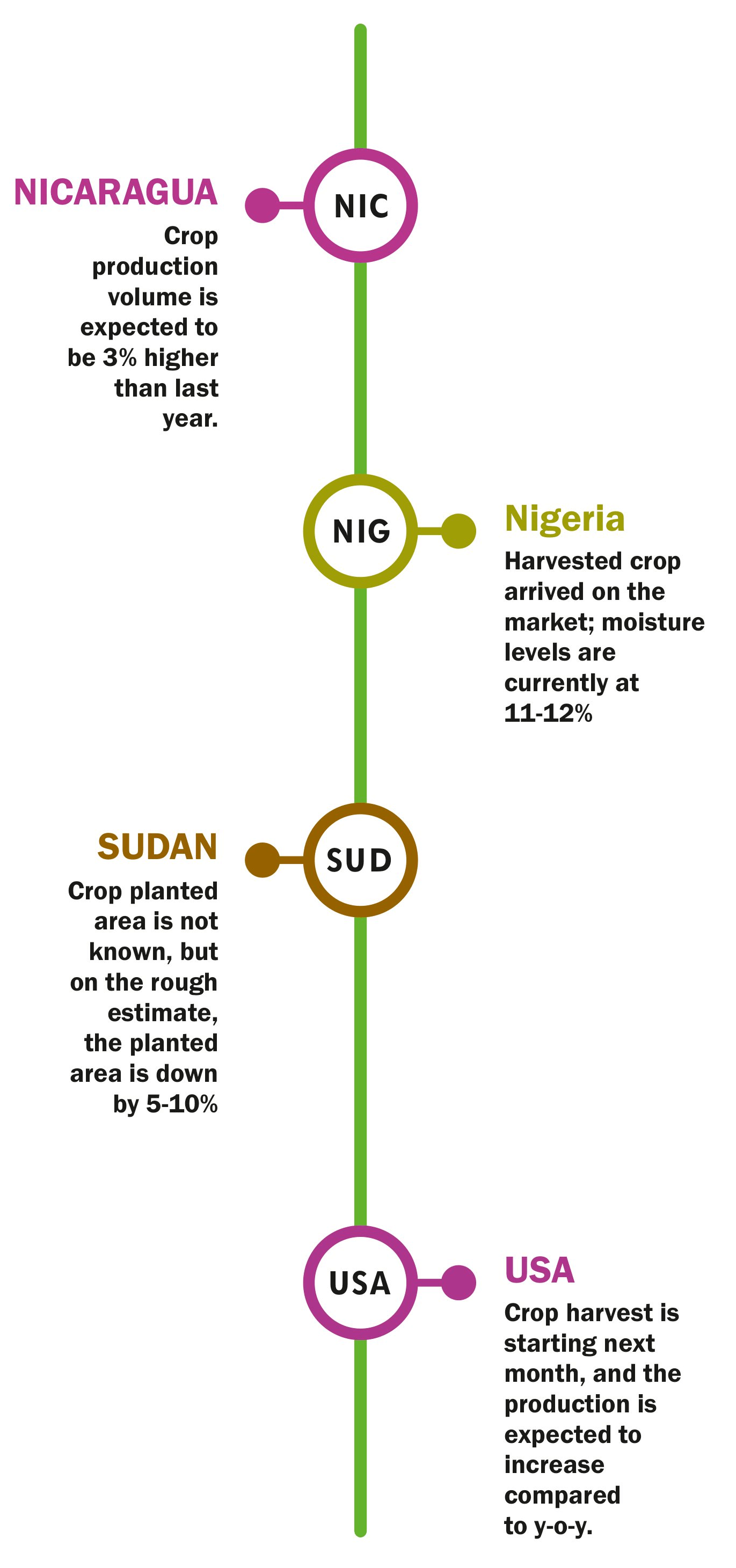 It's harvest season worldwide, and the festive atmosphere is in full swing. Countries with substantial peanut production are commencing their harvests, which will continue from now through the end of the year. Based on our field evaluations, the majority of peanut-producing regions are report ing robust crops, with the exception of Sudan.