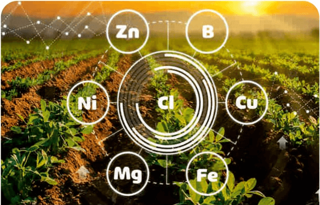 Micronutrients play a crucial role in peanut cultivation as they are essential for various physiological and biochemical processes. While required in smaller quantities compared to macronutrients, micronutrients are equally important for achieving optimal growth, yield, and quality of peanuts. Zinc plays vital for the synthesis of auxins, where hormones promote root and shoot growth. It plays a role in enzyme activation and protein synthesis, and deficiency can lead to stunted growth, reduced leaf size, and shortened internodes. It affects peanut pod develop ment and can result in fewer and smaller pods. Boron is essential for cell wall formation, pollen germination, and seed development. It is involved in sugar transport and carbohydrate metabolism, and deficiency can lead to flower abortion, hollow hearts in pods, and uneven development of seeds within pods. It affects the overall yield and quality of peanuts. Copper is necessary for various enzyme systems involved in photo synthesis and lignin synthesis, and a plant's resistance to diseases and deficiency can result in reduced chlorophyll synthesis, affecting photosynthesis. It can also lead to the wilting of leaves and poor pod development. Iron is essential for chlorophyll synthesis and electron trans port within the photosynthetic system. It's involved in energy transfer and respiration processes, and deficiency leads to chlorosis, causing the yellowing of young leaves while leaving veins green. Reduced photo synthesis and growth can result from iron deficiency. Manganese is involved in enzyme activation, nitrogen metabolism, and photosynthesis. It also plays a role in the breakdown of carbohydrates, and deficiency can lead to interveinal chlorosis and necrosis in leaves. It affects peanut growth and development. Molybdenum is crucial for nitrogen fixation as it's a component of enzymes involved in converting atmospheric nitrogen to a usable form by plants, and deficiency results in nitrogen deficiency symptoms, including stunted growth and reduced nodulation by nitro gen-fixing bacteria. Nickel is required in very small amounts; nickel is essential for urease enzyme activity, which is involved in nitrogen metabolism. Nickel deficiency can lead to reduced growth, urea accumulation in plant tissues, and overall poor nitrogen utiliz ation. Chlorine is involved in photosynthesis and osmoregulation. It's required for maintaining turgidity and cell water balance, and deficiency can result in wilting, leaf burning, and reduced photo synthes is . Proper management of micronutrients in peanut cultivation is essential to prevent nutrient deficiencies and ensure optimal growth and yield.