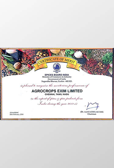 As one of the year’s top chilli exporters, Agrocrops has been awarded a prestigious accolade. The award was presented by the Spices Board of India under the Ministry of Commerce, and recognises us for having exported one of the largest quantities of chilli from India this year, at 8,100 tons.